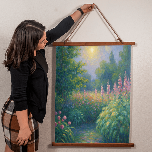 Wall Art Poster - Buddhist Temple with Cherry Blossoms, Japanese Art