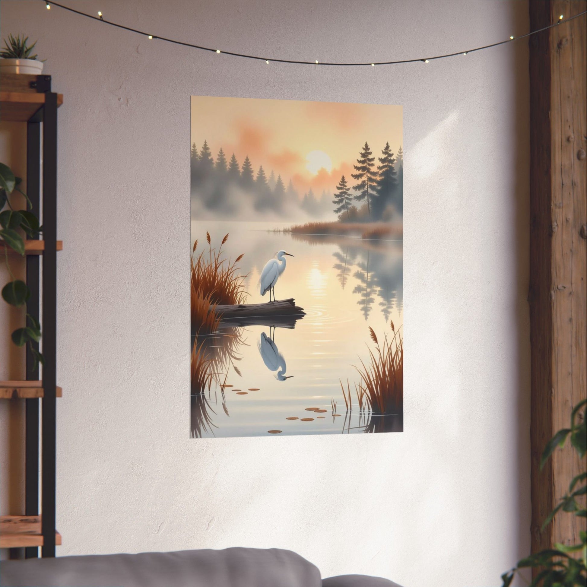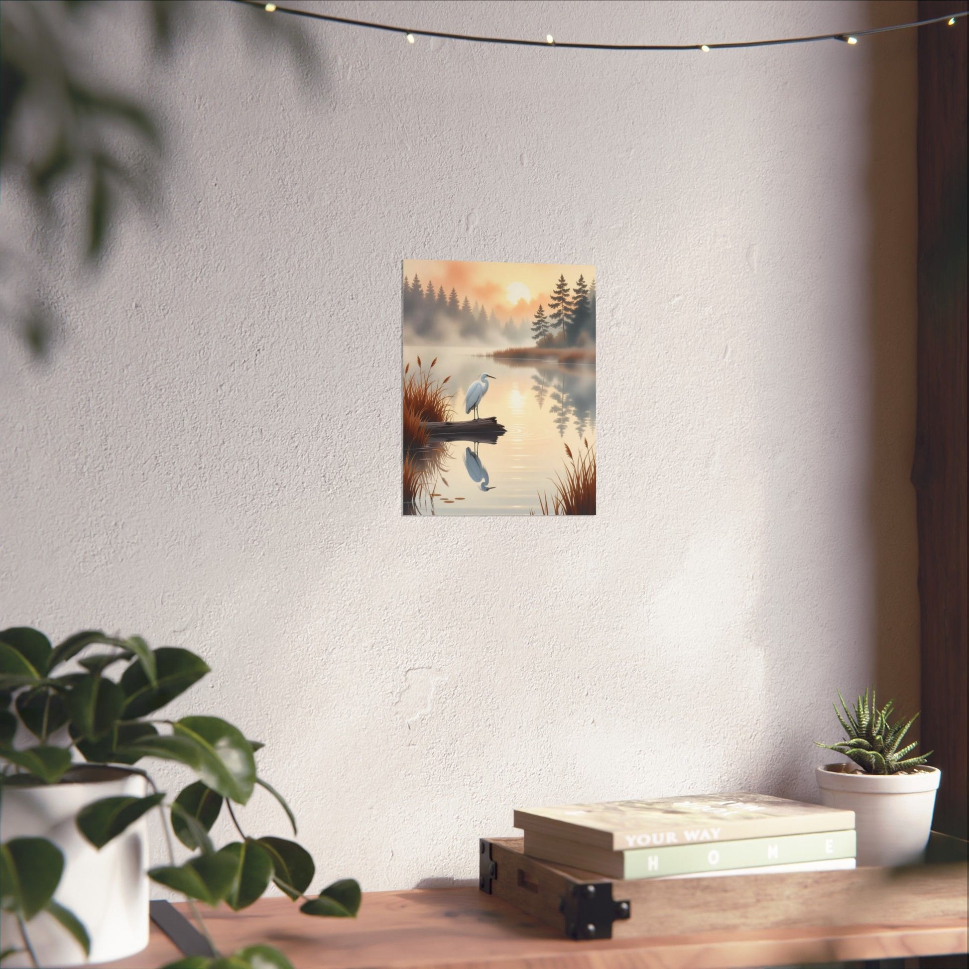 Nature-Inspired Matte Vertical Posters featuring tranquil landscape art, perfect for home decor and creating a serene atmosphere. Ideal gift for bird lovers and those who appreciate nature. Suitable for indoor use and relevant for decorating during holidays and celebrations.